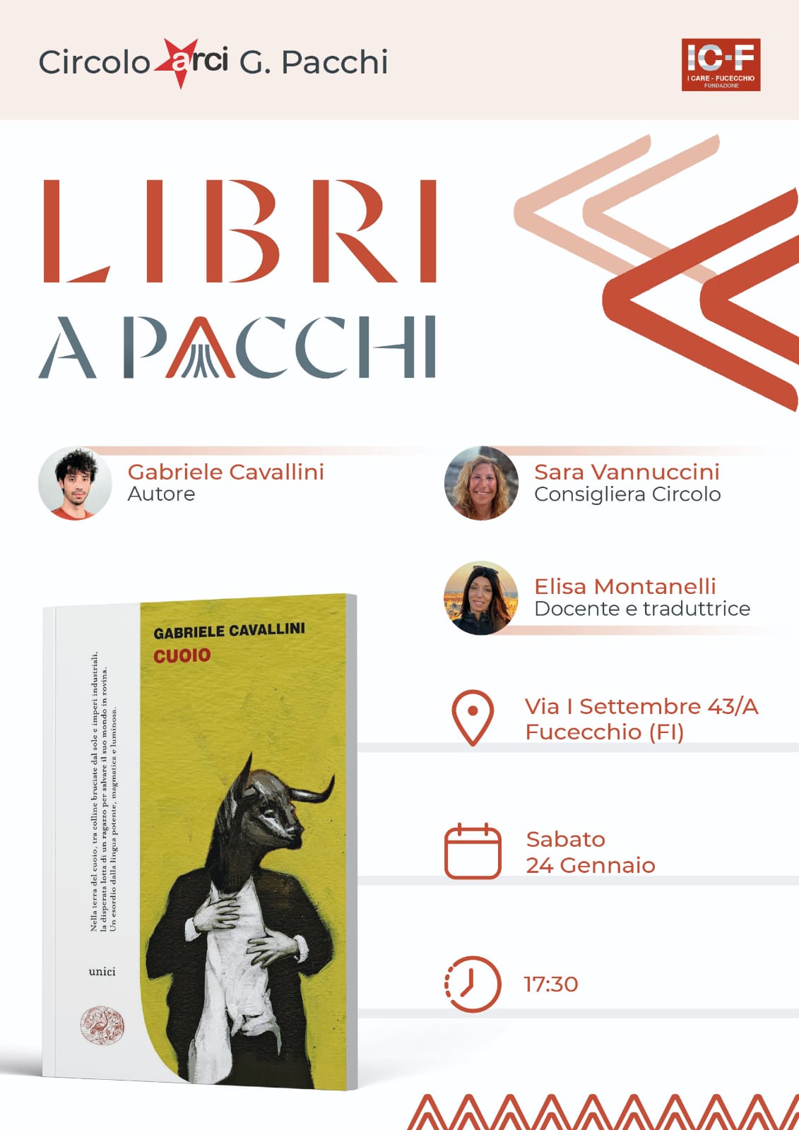 La rassegna letteraria “Libri a Pacchi” del Circolo Pacchi di Fucecchio prosegue con una nuova stagione dedicata alla narrativa, inaugurando con “Cuoio” di Gabriele Cavallini (Einaudi, 2025).
