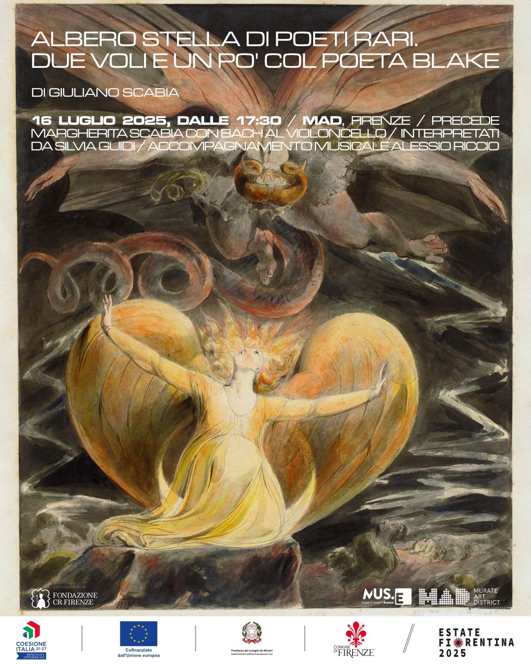 In sintesi, sarà una serata indimenticabile per chiudere la splendida mostra “Nutrire Dio”, dedicata a Giuliano Scabia, che terminerà il 16 luglio.